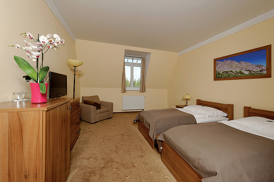 23 m² - pokoj s manželskou postelí či 2 samostatnými lůžky a případně přistýlkou, sociální zařízení se sprchou či vanou