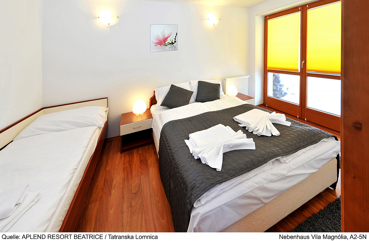 Vila Beatrice se skládá z hlavní budovy "Vila Beatrice" (typ A) s recepcí a snídaňovou místností, dvou depandancí - Vila Júlia (typ B) a Vila Magnólia (typ C) vzdálených maximálně do 300 m od hlavní budovy