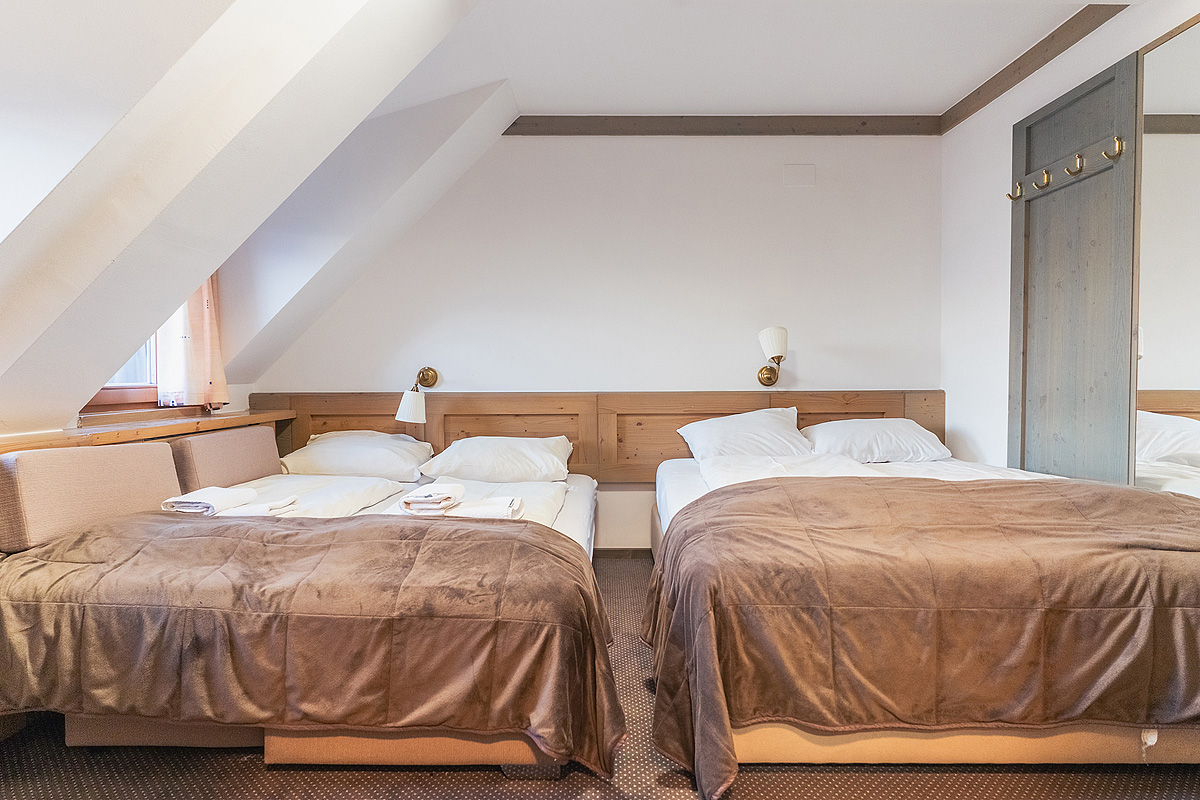 Standard 1/2/3/4 - 20 až 28 m² - pokoj se samostatným lůžkem či manželskou postelí a případně rozkládací pohovka pro 1 osobu či rozkládací pohovka o velikosti 1,5 běžného lůžka (vhodné až pro 2 děti do 12 let), sociální zařízení, zřídka balkon