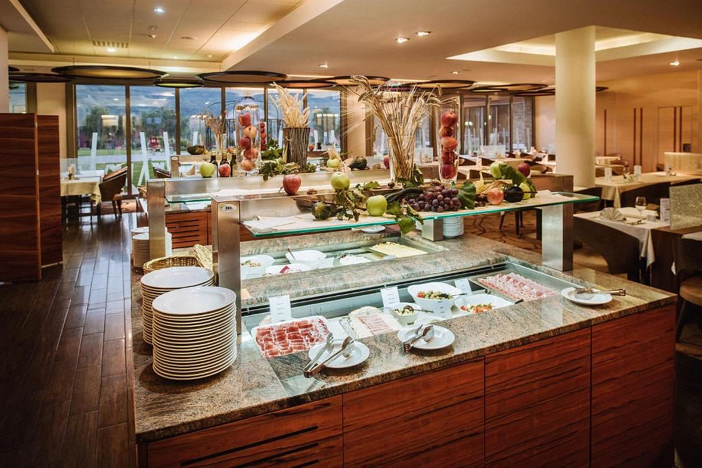 formou bufetu, nápoje za poplatek; 1x týdně tematická večeře