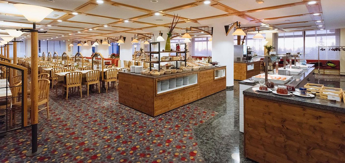 formou bufetu, nápoje za poplatek; 1x týdně tematická večeře