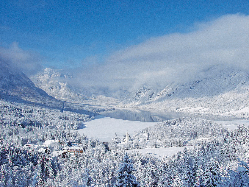 Ať už se vydáte vzhůru lanovkou, či se budete spouštět ze svahů s lyžemi na nohou, bruslit na zamrzlých jezerech nebo běžkovat v upravených stopách, vždy si budete se zatajeným dechem vychutnávat nádherná panoramata s nejvyšší horou Slovinska Triglavem, Bohinjským jezerem a okolním národním parkem. Jednou z nejkrásnějších částí Slovinska je Bledské jezero s kostelem na ostrově, jenž je zcela jistě nejfotografovanějším místem v zemi.