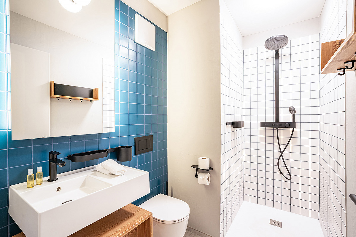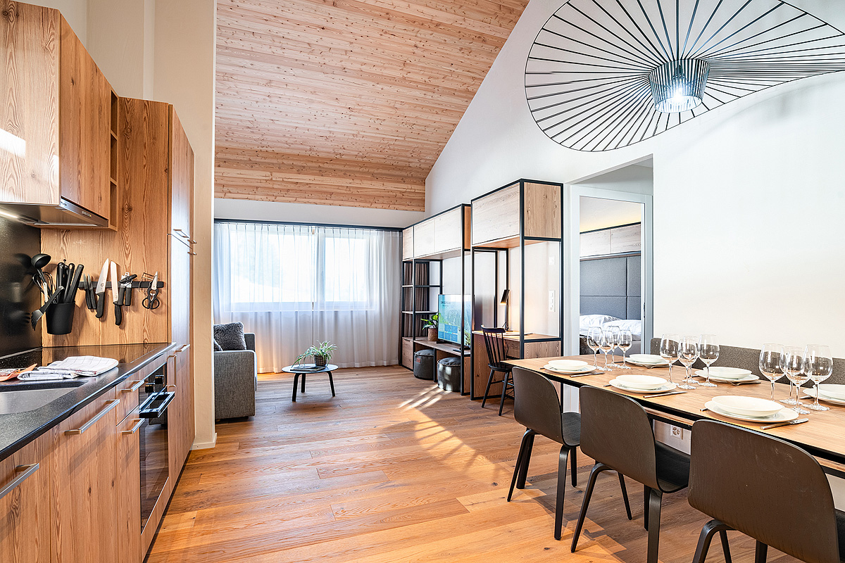 64 až 76 m² - 1 ložnice s manželskou postelí (160x200 cm), ložnice se 2 samostatnými lůžky, obývací pokoj s kuchyňským koutem a rozkládacím gaučem (šíře 160 cm) pro 2 osoby, 2x sociální zařízení