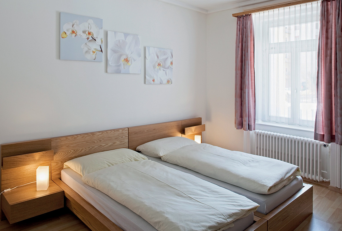 Davos - Platz, centrum - 300 m, skiareál Davos / Jakobshorn - 700 m, skiareál Davos / Parsenn - 3 km, skibus - 500 m