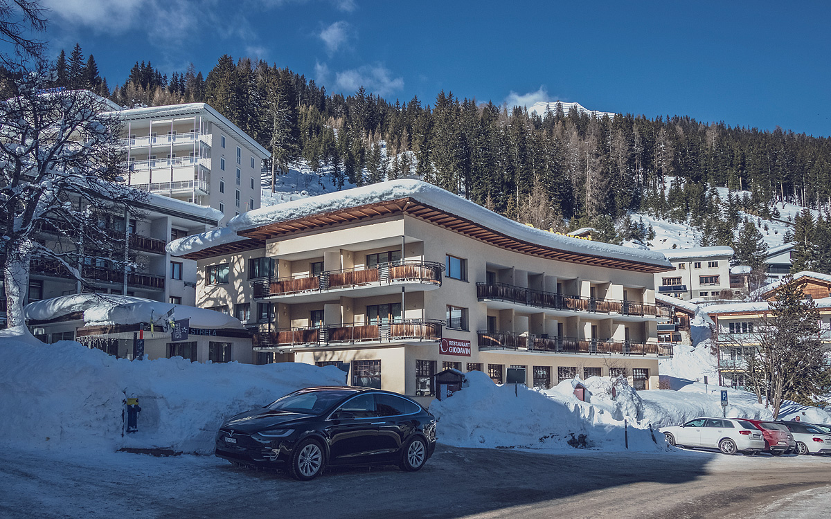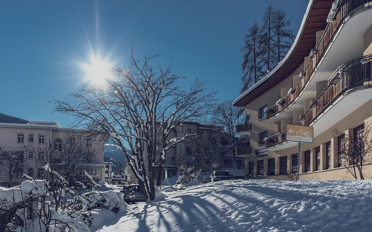 Davos - Platz, centrum - 300 m, skiareál Davos / Jakobshorn - 750 m, vlaková stanice Davos Platz - 550 m, skiareál Davos / Parsenn - 3 km, skibus - 500 m