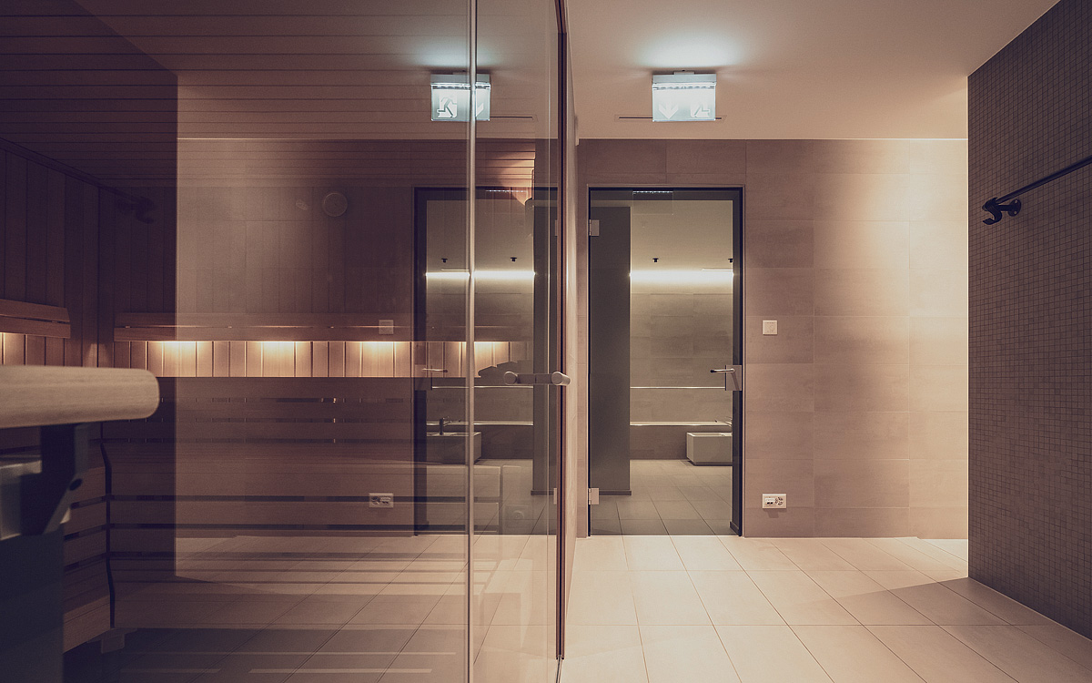 sauna, relaxační koutek s lehátky; posilovna