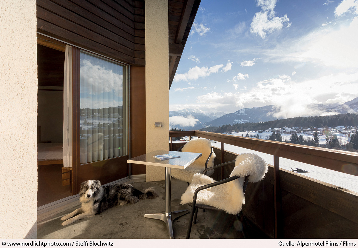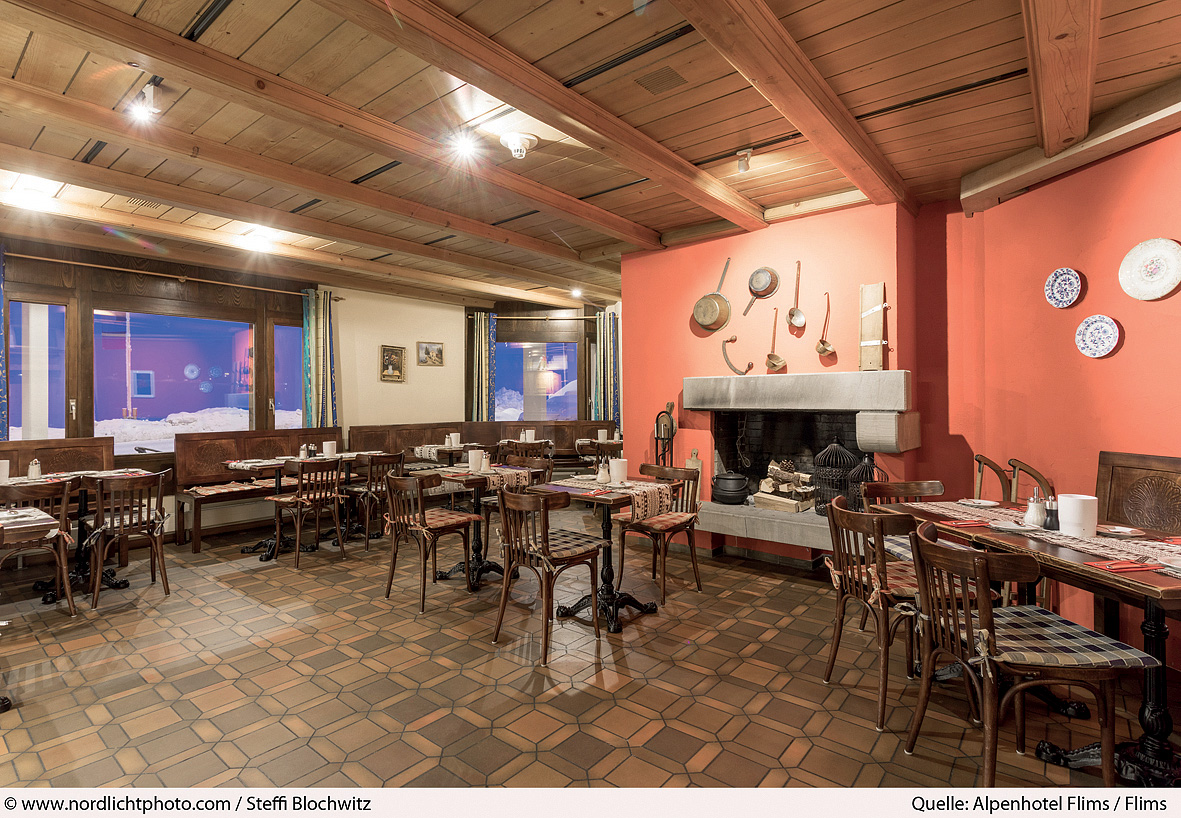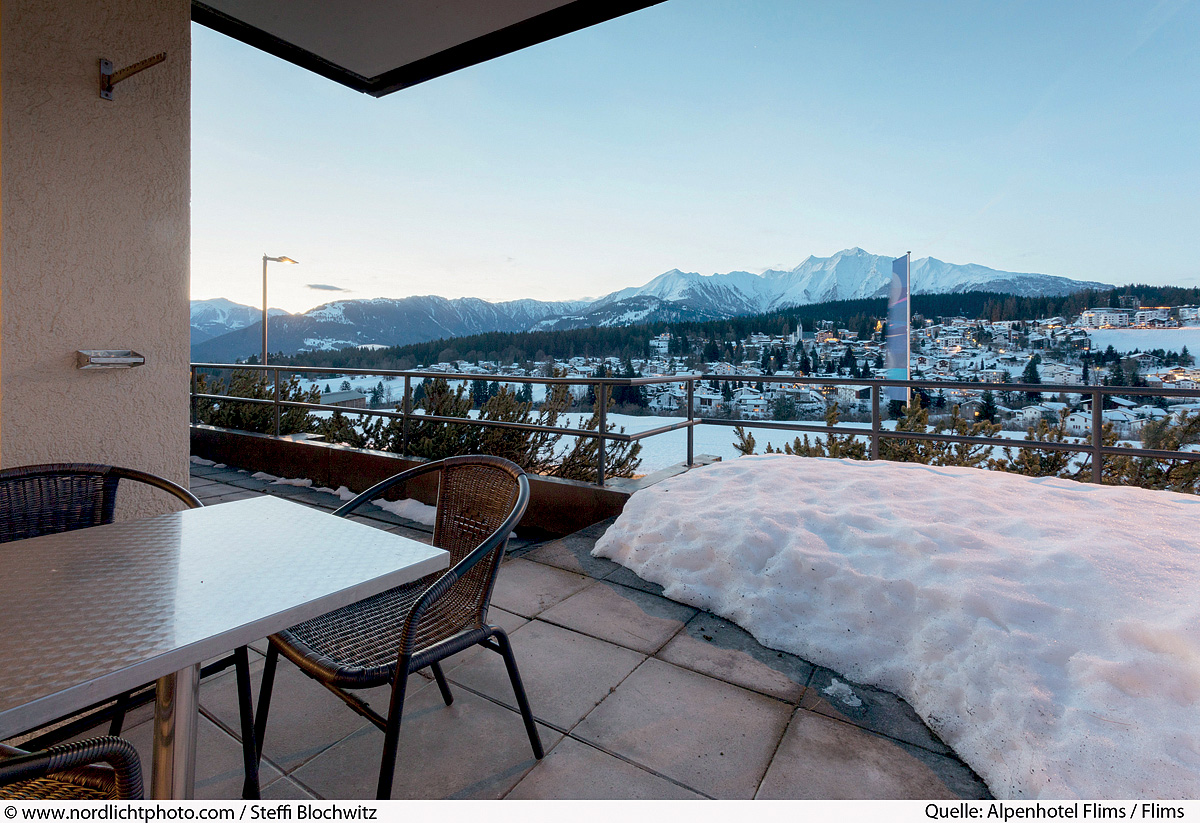 Flims, centrum - 450 m, skiareál Laax / Flims / Falera - 850 m, skibus - 150 m