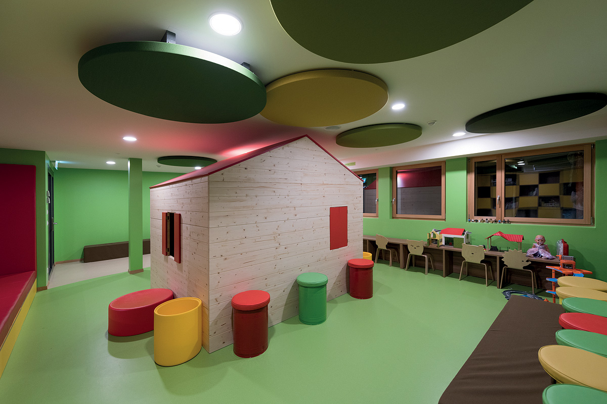 recepce / wi-fi připojení k internetu, à la carte restaurace / bar, společenská místnost, dětská herna (s obrazovkou, herními konzolemi a Xbox), 3x dětský koutek, seminární místnost, úschovna lyží a lyžařských bot, výtah, vyhrazené parkoviště*, garážová stání* (počet míst omezen), nabíjecí stanice elektroaut*, pračka* a sušička*