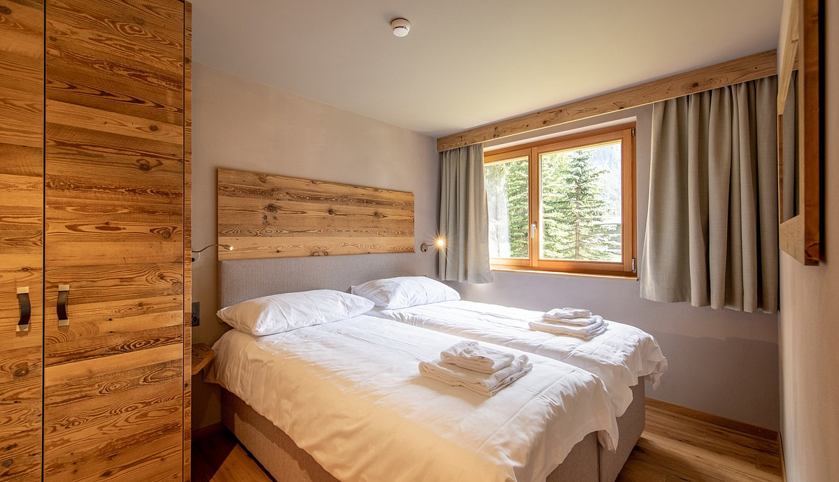 57 až 67 m² - 2 ložnice se 2 samostatnými lůžky, obývací pokoj s kuchyňským koutem a rozkládacím gaučem (šíře 160 cm) pro 2 osoby, sociální zařízení, 1x oddělené WC; apartmán je zpravidla bezbariérový (na zpětné potvrzení)