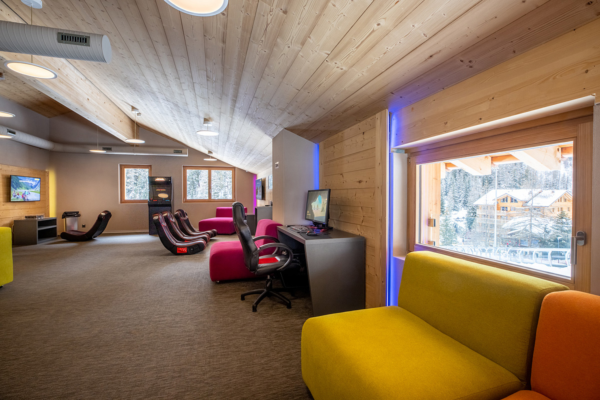 recepce / wi-fi připojení k internetu, společenská místnost / konferenční místnost, 2x restaurace / bar, dětská herna / videohry / mini lezecká stěna, úschovna lyží a lyžařských bot, výtah, vyhrazené parkoviště*, garážová stání* (počet míst omezen), pračka* a sušička*, obchod se sportovním oblečením